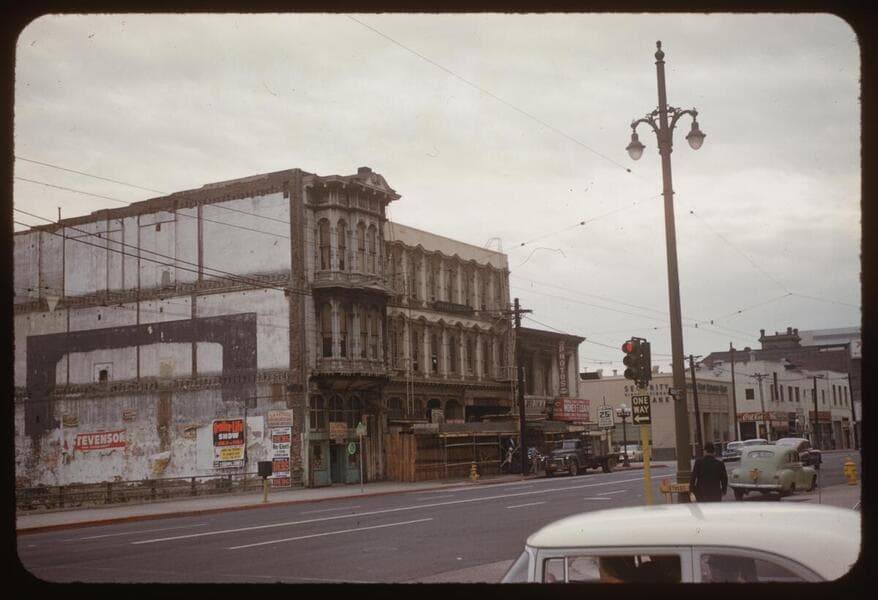 Rear view of Grand Central Hotel being demolished. Main Street at 101 Freeway