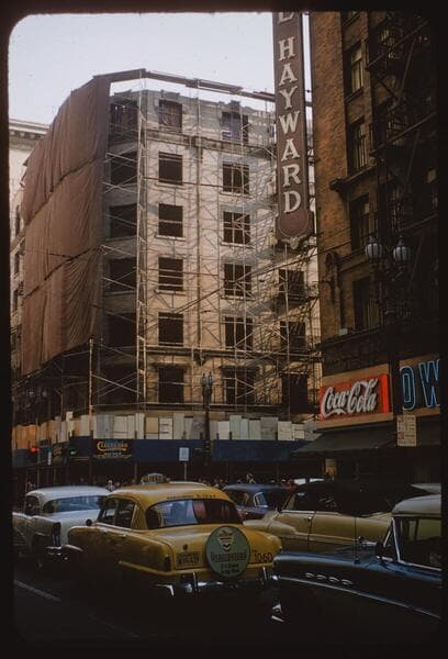 Gross Building (formerly the Abbot Kinney) with scaffolding as it is undergoing demolition.