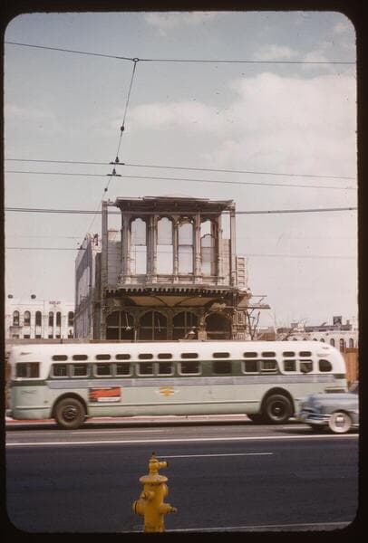 Main Street at 101 freeway. Grand Central Hotel being wrecked