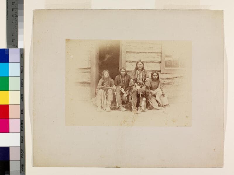 This is a collection of mostly studio portraits of Native Americans from the Midwestern and Southwestern United States taken during the American Indian Wars. There are also views of their homes and camps on reservations. The photographs in this collection depict members of the Arapaho, Cheyenne, Comanche, Crow, Kiowa, Osage, and Wichita tribes during the American Indian Wars; Native American camp sites on Indian reservations; chieftains; a medicine man; native prisoners of war; native women and children; braves and their families; tipis; native families; and native scouts for the U.S. army. Notable portraits include Lone Wolf, Satank, Chief Stumbling Bear, and Chief Powder Face. William S. Soule is the photographer of the first 23 photographs, and Fred Miller is the photographer of the last two.