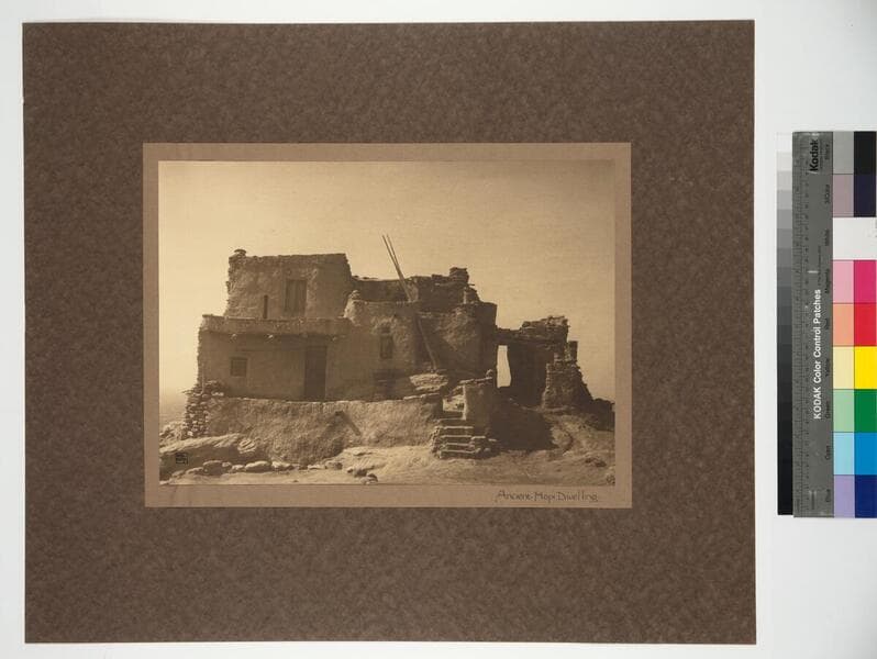 Repairing the House walls. Note crude Indian scaffolding. San Juan