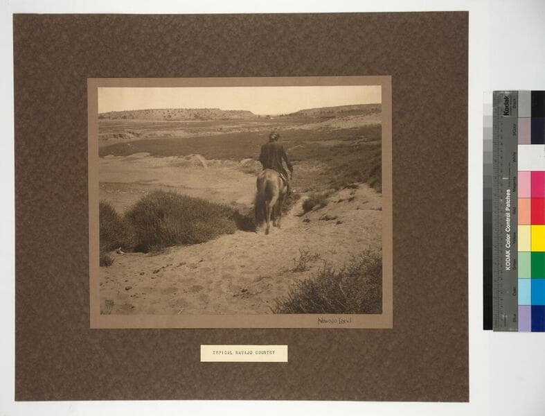 Men racing through the desert on horseback with spectators on horseback in the background.