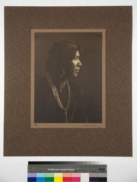 Studio portrait of a Navajo man with earrings and an ornate necklace.