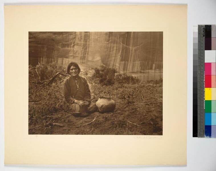 Seated Navajo woman and her children.