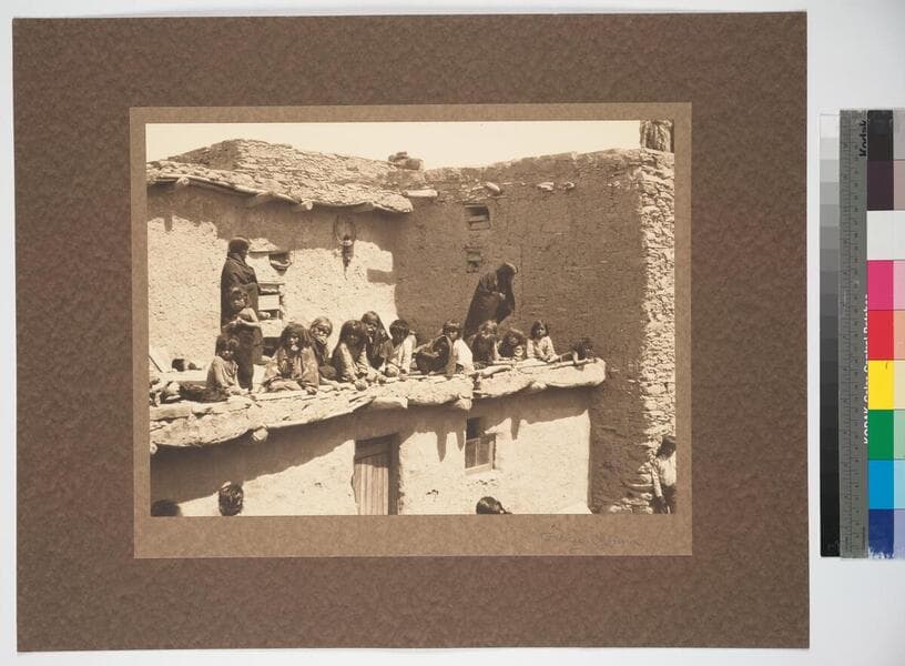 Hopi women and children in pueblo of Oraibi, 1890
