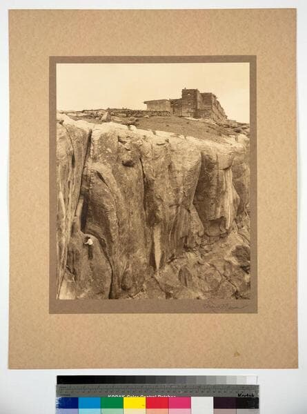 Acoma, New Mexico. Prehistoric vertical trail leading from the desert plain below the cliff to the top of the great rock on which the town of Acoma is located