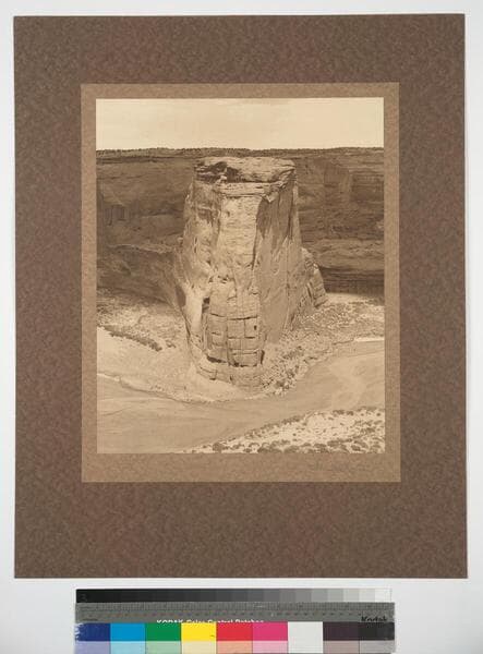 Landscape view of large rock formation in Canyon de Chelly, Arizona.