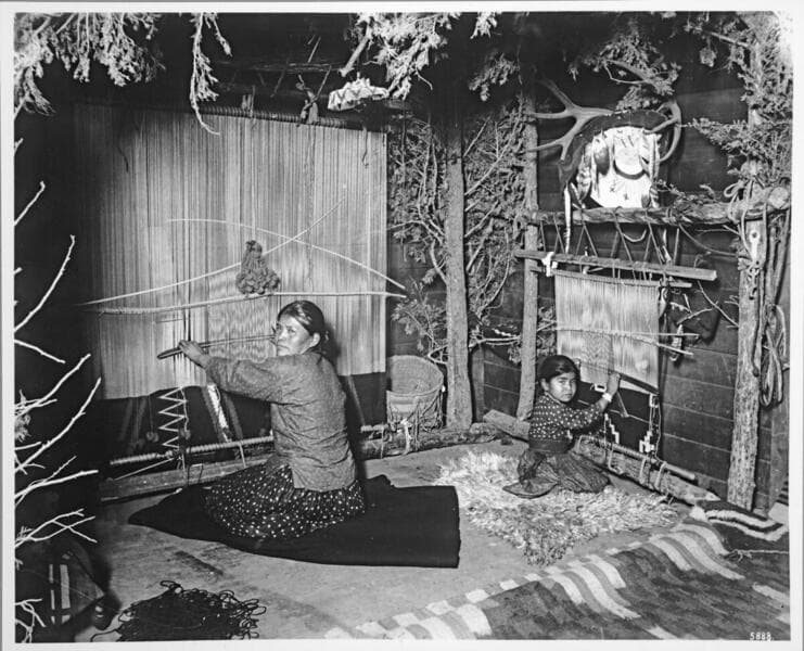 Navajo woman weaving blanket, Jeddito Springs, Arizona