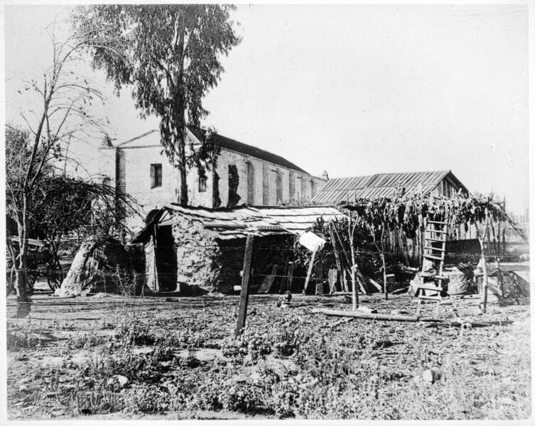 Mission San Gabriel, showing marks of first bell tower. The last of the Mission Indian Settlements