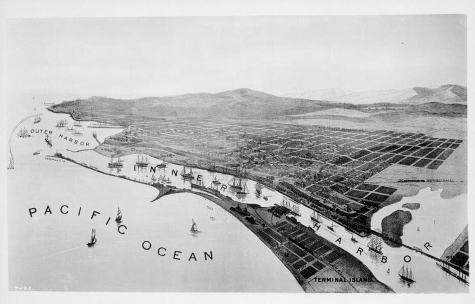 San Pedro and proposed inner harbor (from Lithograph), 1905