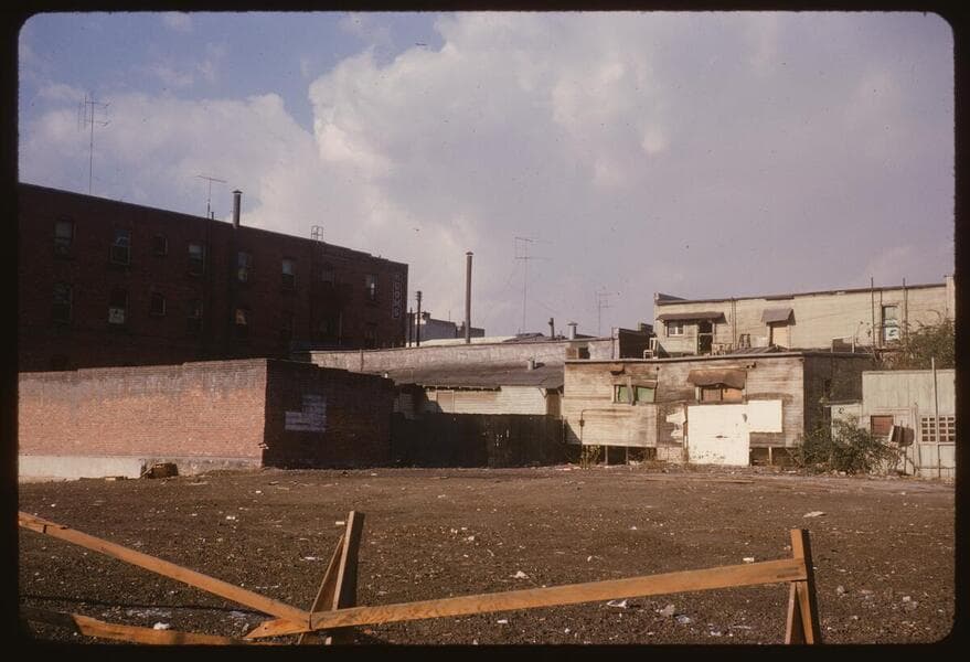 Rear view of buildings along south side of 3rd Street