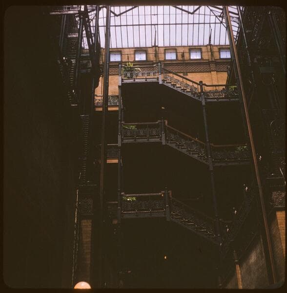 Bradbury Building, 304 South Broadway. Washington Building in background is on Spring Street.