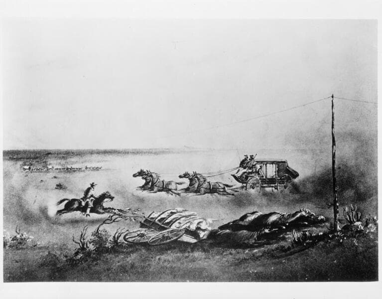 Early transportation, Pony Express, stages, covered wagons, and the new telegraph line