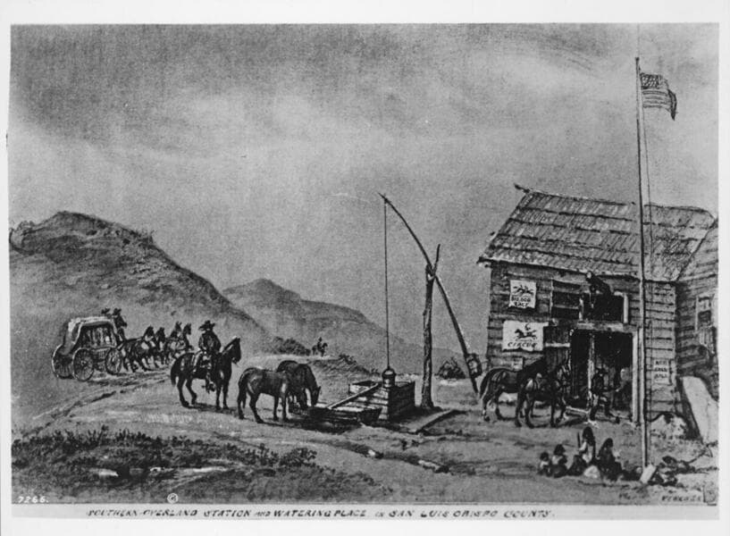 Overland Stage Station at San Luis Obispo, illustration by Vischer