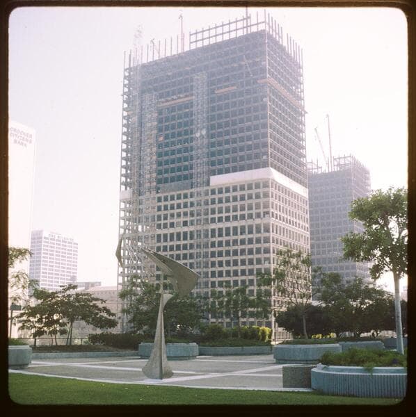 From 21st floor of Tishman Building at Flower Street and Wilshire Boulevard. Showing Bunker Hill redevelopment; Flower Street frontage also.