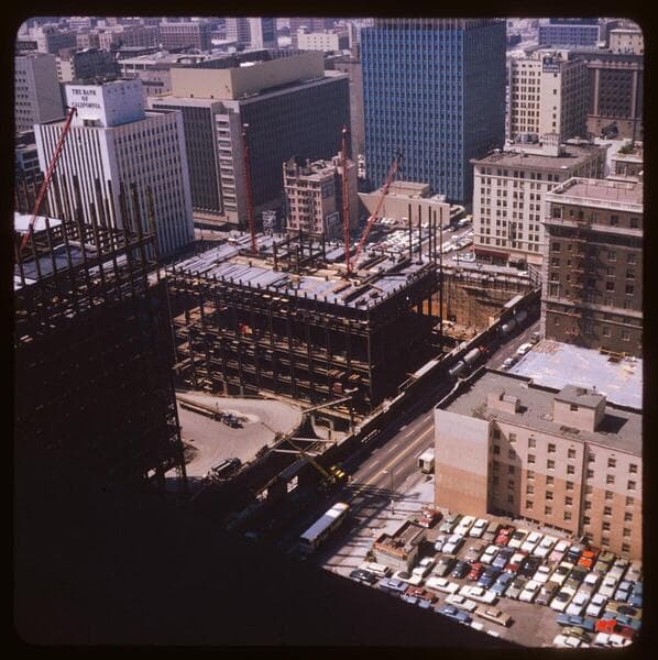 Richfield-Bank of America building site, showing old Richfield Building soon to go
