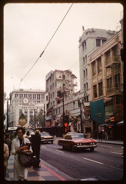 Intersection of 6th Street and Spring Street. Grosse Building being wrecked