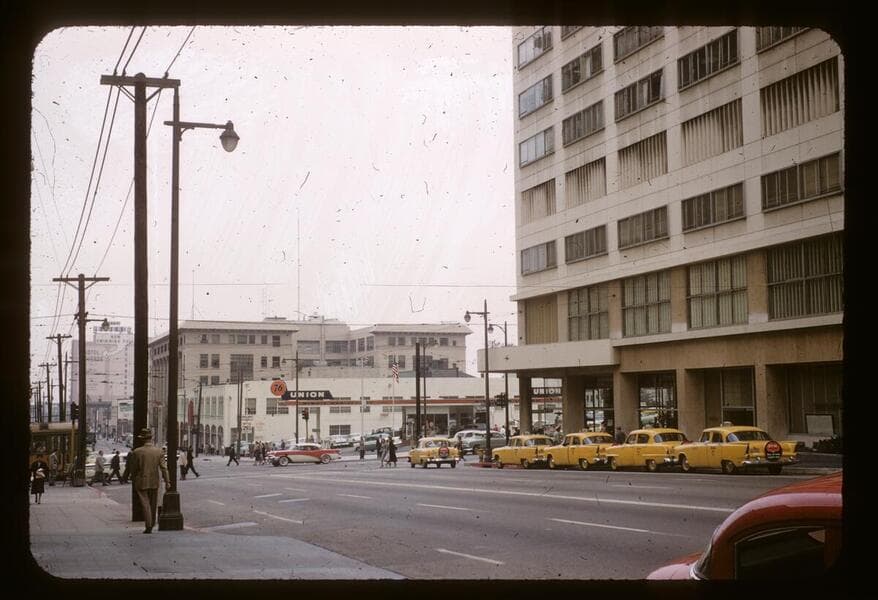 Bunker Hill area buildings on 3rd Street viewed from Figueroa Street