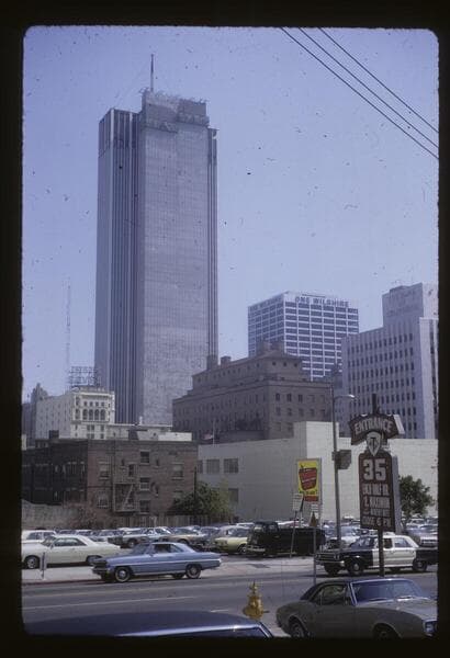 This collection consists of 35mm Kodachrome slides taken between 1954 and 1972. This collection of photographs taken by amateur photographer Palmer Conner documents by street the physical and social changes of Bunker Hill during the earliest stages of redevelopment. The collection is particularly strong in its depiction of the Bunker Hill neighborhood of downtown Los Angeles during redevelopment in the 1950s. Images chiefly consist of views of commercial and residential building exteriors taken from the street, including images of both new construction and older buildings in the process of being demolished.