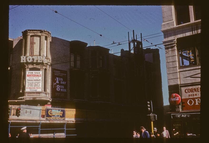 Westminster Hotel at the northeast corner of 4th Street and Main Street.