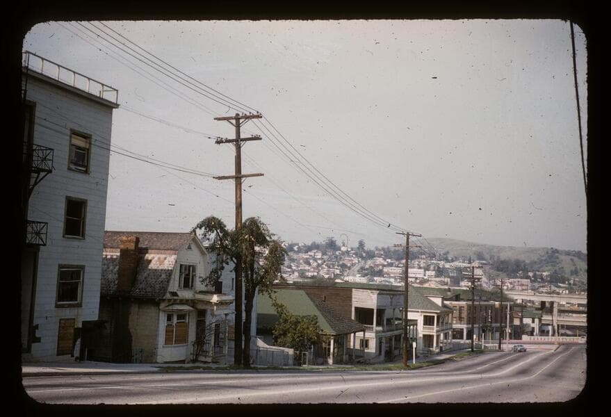 This collection consists of 35mm Kodachrome slides taken between 1954 and 1972. This collection of photographs taken by amateur photographer Palmer Conner documents by street the physical and social changes of Bunker Hill during the earliest stages of redevelopment. The collection is particularly strong in its depiction of the Bunker Hill neighborhood of downtown Los Angeles during redevelopment in the 1950s. Images chiefly consist of views of commercial and residential building exteriors taken from the street, including images of both new construction and older buildings in the process of being demolished.