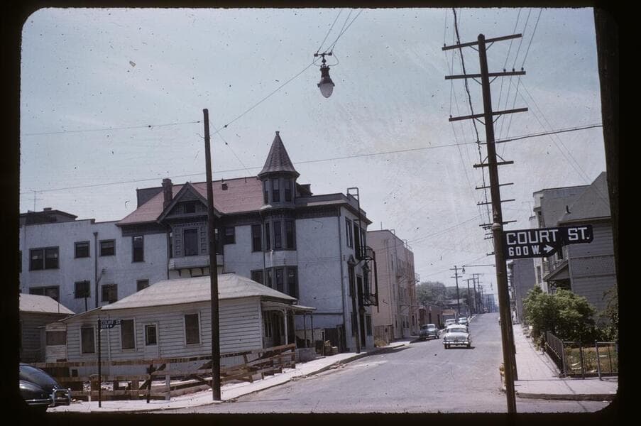 This collection consists of 35mm Kodachrome slides taken between 1954 and 1972. This collection of photographs taken by amateur photographer Palmer Conner documents by street the physical and social changes of Bunker Hill during the earliest stages of redevelopment. The collection is particularly strong in its depiction of the Bunker Hill neighborhood of downtown Los Angeles during redevelopment in the 1950s. Images chiefly consist of views of commercial and residential building exteriors taken from the street, including images of both new construction and older buildings in the process of being demolished.