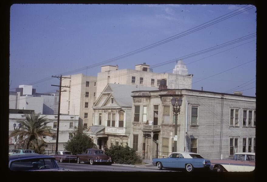 Bunker Hill from Clay Street between 2nd and 3rd Streets, looking west