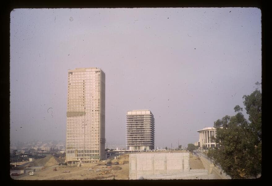 This collection consists of 35mm Kodachrome slides taken between 1954 and 1972. This collection of photographs taken by amateur photographer Palmer Conner documents by street the physical and social changes of Bunker Hill during the earliest stages of redevelopment. The collection is particularly strong in its depiction of the Bunker Hill neighborhood of downtown Los Angeles during redevelopment in the 1950s. Images chiefly consist of views of commercial and residential building exteriors taken from the street, including images of both new construction and older buildings in the process of being demolished.