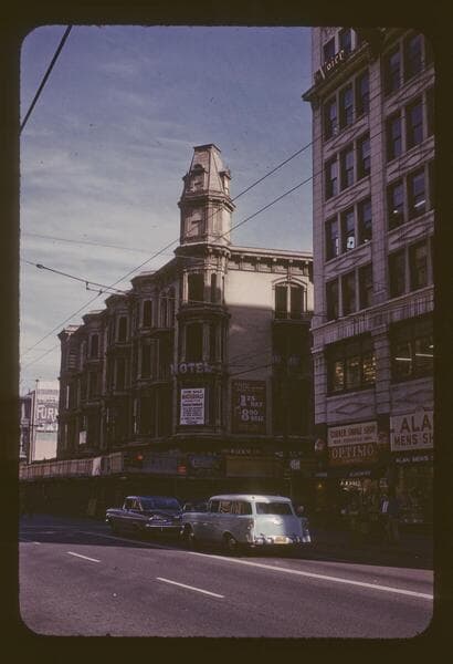 Westminster Hotel at the northeast corner of 4th Street and Main Street.