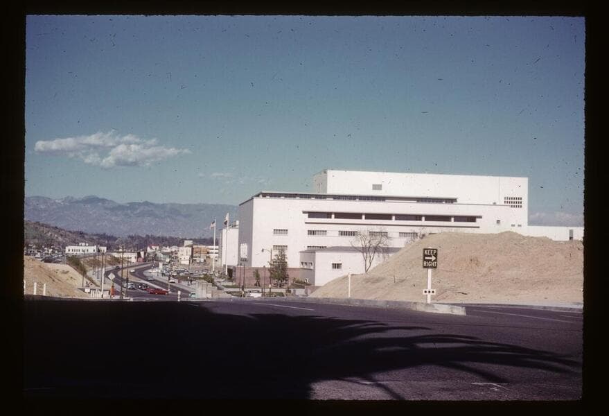 This collection consists of 35mm Kodachrome slides taken between 1954 and 1972. This collection of photographs taken by amateur photographer Palmer Conner documents by street the physical and social changes of Bunker Hill during the earliest stages of redevelopment. The collection is particularly strong in its depiction of the Bunker Hill neighborhood of downtown Los Angeles during redevelopment in the 1950s. Images chiefly consist of views of commercial and residential building exteriors taken from the street, including images of both new construction and older buildings in the process of being demolished.