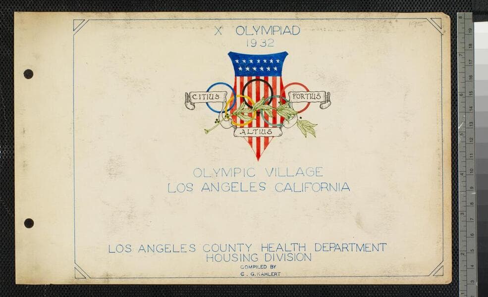 This collection contains seven volumes of photographs and text covering activities of the Los Angeles County Department of Health Services from 1930 to 1932. The Bureau of Housing and Bureau of Inspection are two of the divisions represented. The 457 photographs depict housing, schools, water supply, swimming pools, sewage disposal, dairy farms and milk plants, garbage and refuse disposal, and general sanitation, among other topics. Of particular interest is volume 1, documenting the "Hoovervilles" that sprang up throughout Los Angeles during the Great Depression. In contrast is the volume showcasing the state-of-the-art housing for Olympic athletes who were in Los Angeles for the Tenth Olympiad held in 1932. Titles of the volumes are: The Habitations of Unemployed in Los Angeles County, 1932 (volume 1); Activities of the Bureau of Inspection, 1932 (volume 2); Sewage Disposal Methods in Los Angeles County (volume 3); Picture Story of Milk in Los Angeles County (volume 4); Olympic Village, Los Angeles, 1932 (volume 5); Miscellaneous Scenes of Los Angeles County Department of Health Activities (volumes 6-7). Volume 4 was compiled by Richard A. Koch and volume 5 was compiled by C. G. Kahlert.