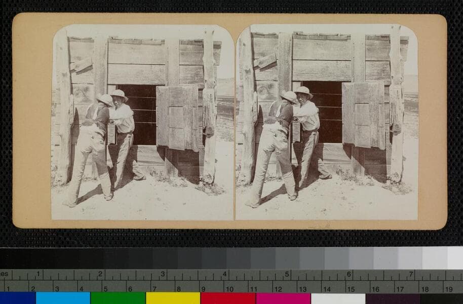 Ramona's son, Condino, and a friend playing inside the jail at Cahuilla