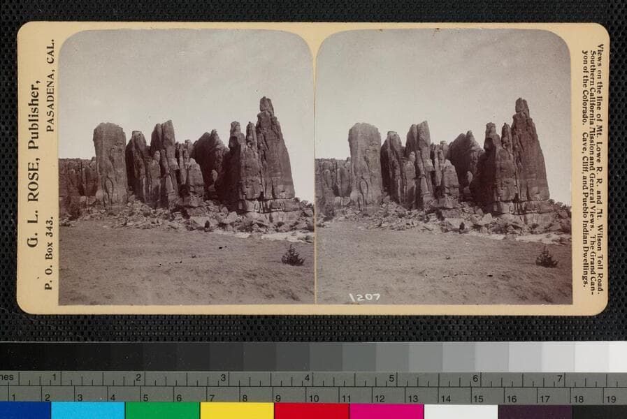 A shelter(?) and fence made of wood and sticks is at the base of the rock.