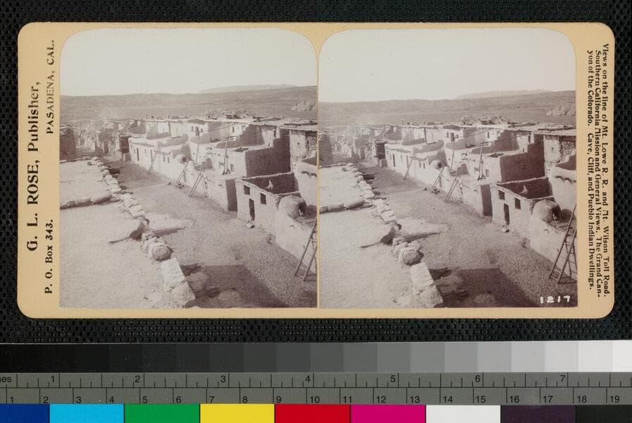Street in Pueblo of Acoma, New Mexico. George Wharton James is figure at left