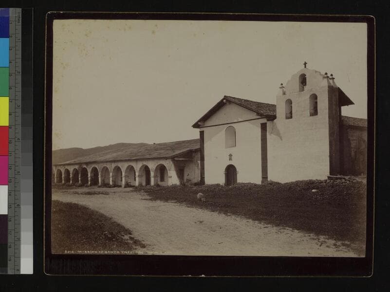 A collection of albumen photographs of 12 California Missions, taken by nineteenth-century photographer William Henry Jackson sometime between 1885 and 1890. All of the photographs are titled and signed, "W.H.J. & Co." One or more images of the following missions are included: San Antonio de Padua, San Carlos Borroméo de Carmel, San Diego de Alcalá, San Fernando Rey, San Francisco de Asís, San Gabriel Arcángel, San Juan Bautista, San Juan Capistrano, San Luis Rey, San Miguel Arcángel, Santa Barbara and Santa Ines. The photographs primarily show the missions' front façades or courtyards, both in ruins and with slight repair work.