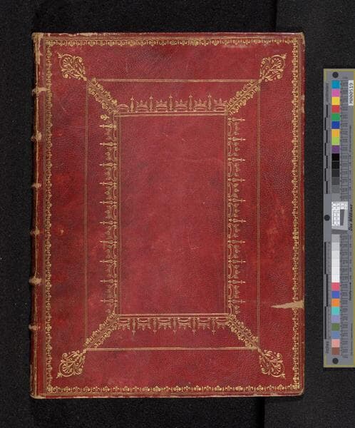 Block book. Woodcut illustrations and xylographic texts on 48 leaves printed in black ink one side only. Illustrations hand-colored in orange, green, pink, brown and black. Binding: Vol. 1: 19th century gilt-filleted blue morocco, by Lloyd, Wallis, and Lloyd; in half blue morocco case. Vol. 2: portfolio of 19th century half black morocco over marbled paper.