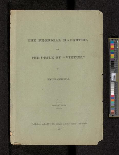 One painting book entitled Outline Pictures for Little Paint Brushes, published by D. Lothrop & Co., Boston, copyright 1881. The title page is subtitled With Stories Giving Hints for Coloring, by the Editors of Babyland. The figures were drawn by George F. Barnes. The cover of the book shows a young girl sitting under a blooming tree branch using watercolor to paint in a book. The back cover features two outlined images in gold. Twelve of the fourteen images in the book are accompanied by stories which hint at which colors to use and where. All of the images have been filled in using watercolor. The note in the front of the book advises that "a good thing to do is to first copy the picture on white paper, and try colors upon that until you are suited, before painting the one in the book." One free hand image appears at the back of the book. It depicts a young lady sitting on a fence rail, looking back at the viewer over her left shoulder. The last several pages have had the corners trimmed or cut off.
