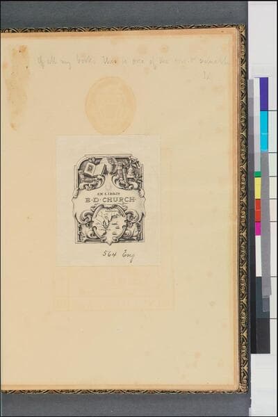 - Bookplates of E.D. Church, John Delaware Lewis, and Frederick Locker-Sampson; initialed ms. note by Frederick Locker-Sampson.
