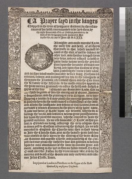 A prayer sayd in the kinges chappell in the tyme of hys graces sicknes, for the restauracion of his helth