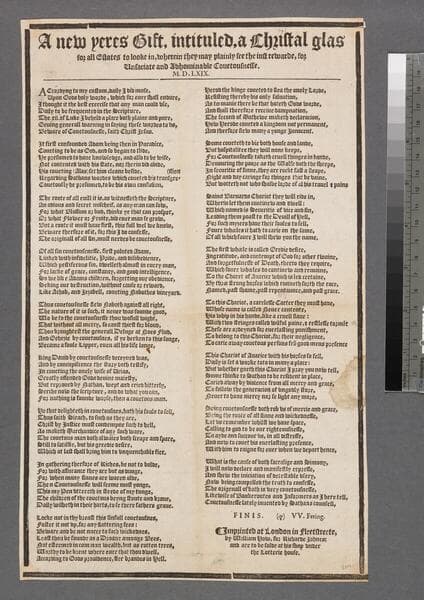 A new yeres gift, intituled, a christal glas for all estates to looke in, : wherein they may plainly see the iust rewarde, for unsaciate and abhominable couetousnesse. M.D.LXIX
