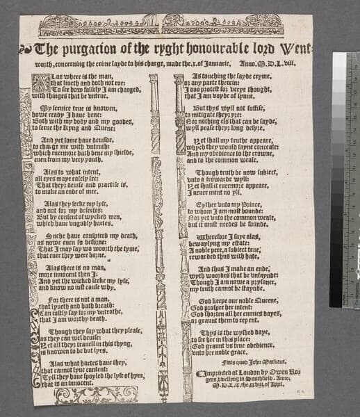 ![An epitaphe on the death of the right noble and most vertuous lady Margarit Duglasis good grace, Countisse of Liuinox (& daughter to the renowmed & most excellent lady Margarit Queene, sister to the magnificent & most mighty Prince Henry the eight of England, Fraunce and Ireland, Kinge, and by Gods permission Queene of Scotland,) who disceased this life in the ninth day of March. anno. 1577. at hir mannoure in Hackny in the countye of Midelsex and lieth enterred the. 3. day of April at Westminster in the chaple of King Henry the seuenth, her worthie grandfather of Englande, Fraunce and Ireland King. [et]c. The yeare of our Lorde God. 1578, and in the. 20. yeare of our soueraigne lady Queene, Elizabeth by the grace of God of Englande, Fraunce and Irelande, Queene, defendour of the faith. [et]c](/_next/image?url=https%3A%2F%2Frail.huntington.org%2FIIIF3%2FImage%2F22APN4V42NAD%2Ffull%2F%5E360%2C%2F0%2Fdefault.jpg&w=750&q=75)