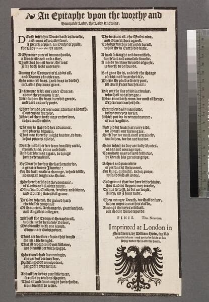 An epitaphe vpon the worthy and honorable lady, the Lady Knowles
