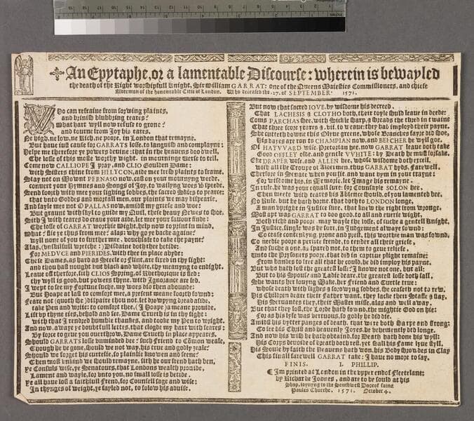 An epytaphe vpon the death of the Right worshipfull, Sir william Garrat Knight: and chiefe alderman of the Queenes Maiesties Citie of London. Who deceased the. 27. of September. 1571. anno aetatis sue. 64