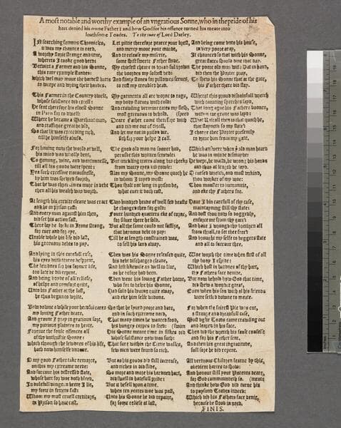 A most notable and worthy example of an vngratious sonne, who in the pride of his hart denied his owne father: and how God for his offence turned his meate into loathsome toades. To the tune of Lord Darley