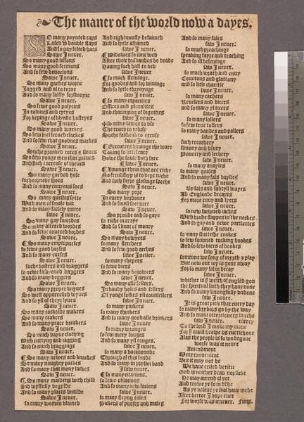 ESTC S121796 ; Verse - "Abstayne from pryde, abstaine from fornication" ; Actual printer's name from STC addendum; publication date conjectured by STC ; Only known copy is printed on other side of ESTC S375