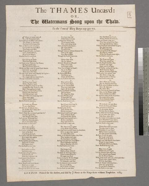 The Thames uncas'd: or, The watermans song upon the thaw. To the tune of Hey boys up go we