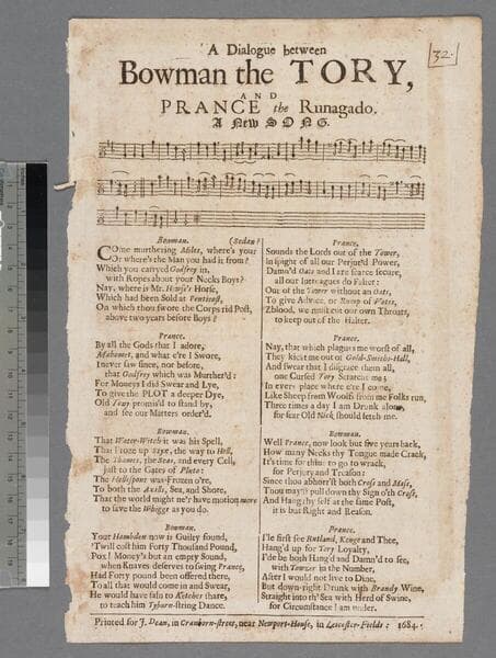 A dialogue between Bowman the Tory, and Prance the Runagado. A new song