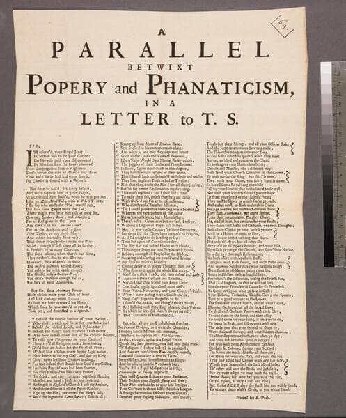 A parallel betwixt popery and phanaticism, in a letter to T.S