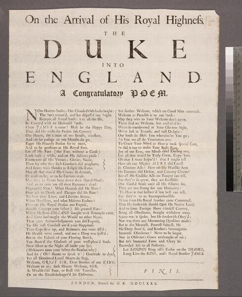 On the arrival of His Royal Highness. The Duke into England· A congratulatory poem