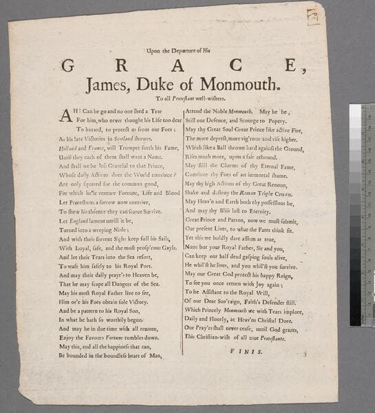 Upon the departure of His Grace, James, Duke of Monmouth. To all Protestant well-wishers